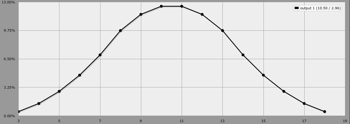 It’s the bell curve for Attribute distributions generated by rolling 3d6, which was how many a D&D session began. Throw three dice six times, record the scores next to the Attributes in sequence, and charge into the dungeon with your voulge drawn.